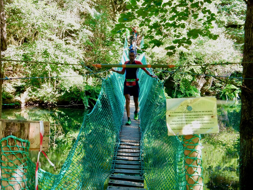 - KM 12 : descente dans la vallée du Dadou et traversée du Dadou sur une passerelle suspendue